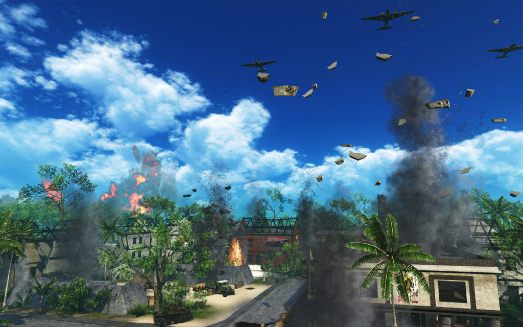 The gameplay is enhanced by scripted events I created in Matinee. Players can experience squadrons of aircraft flying overhead, air raids, and kamikaze attacks on nearby ships. These events were well received by the community and helped make the map memorable.