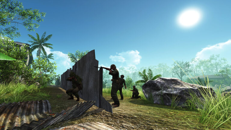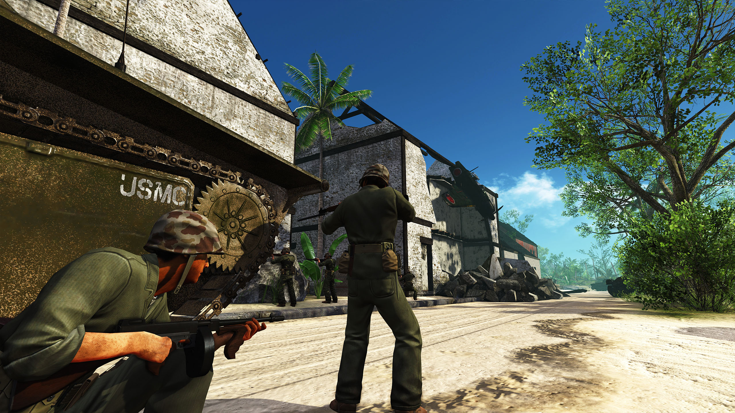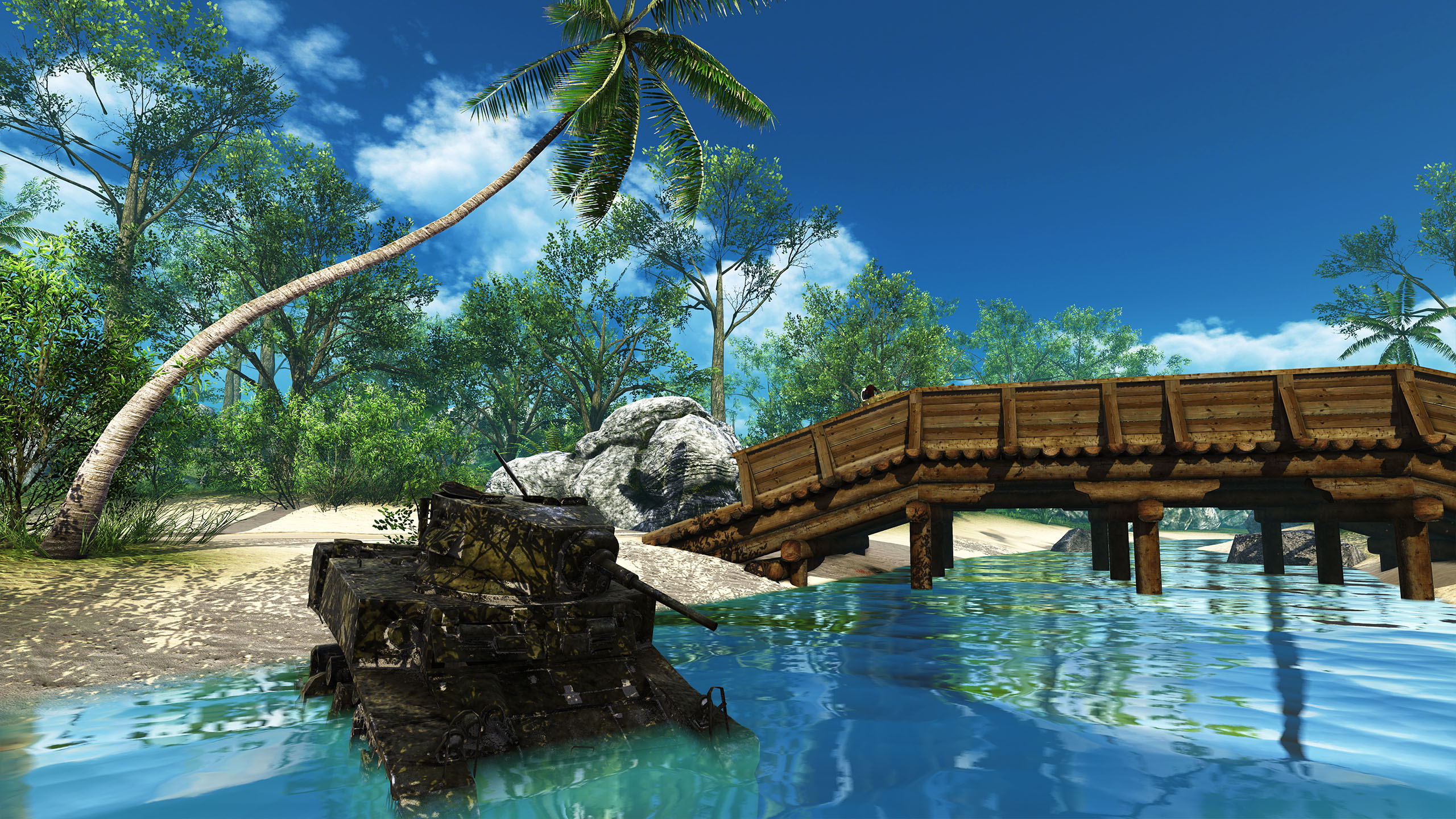 The gameplay is enhanced by scripted events I created in Matinee. Players can experience squadrons of aircraft flying overhead, air raids, and kamikaze attacks on nearby ships. These events were well received by the community and helped make the map memorable.